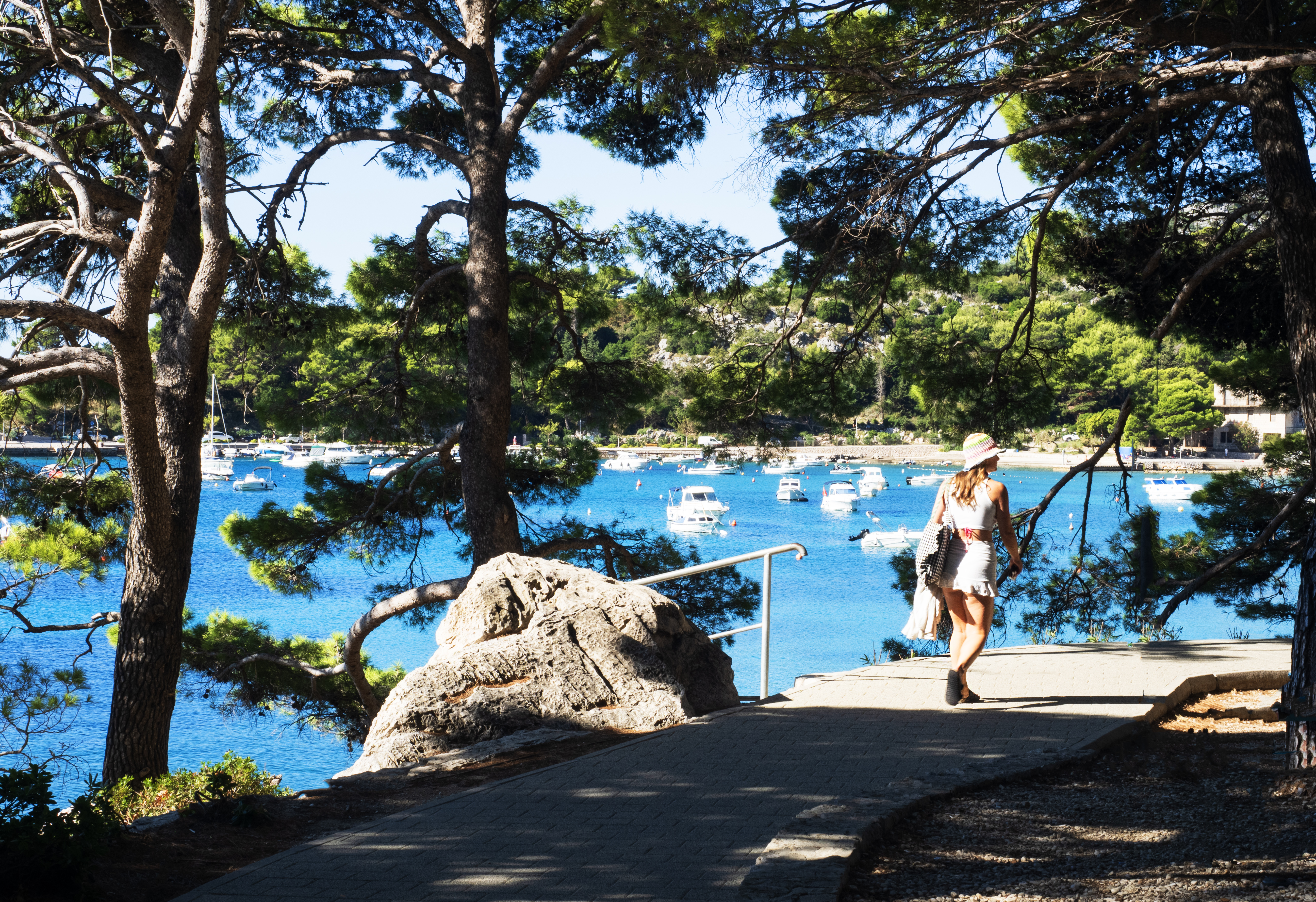 Photo 4 A pine walk The colours here are what make the image. The vivid turquoise, dark green and deep shadows make for an interesting composition Natural framing with the trees works well and the pathway with the figure creates a leading line suggestive of a narrative. It’s a great holiday image… conjures up warmth but with a slight touch of drama. This was , to my mind, a close second.