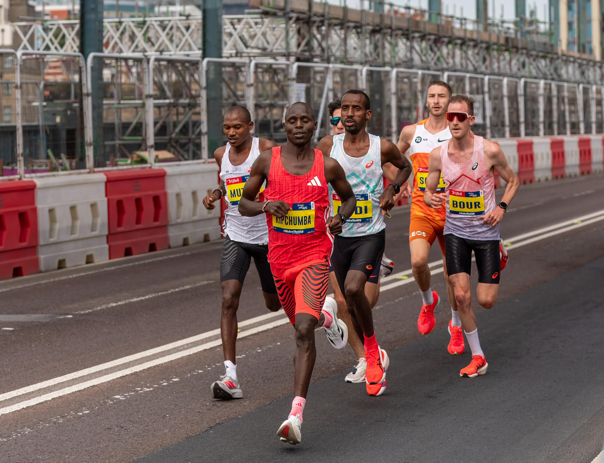 Photo 2 Runners Another action shot with very sharp focus and capturing a moment in time The bunching of the athletes creates a central focal point and the road marking and scaffolding provide leading lines which add to the feeling of movement. The human element is well captured through the facial expressions As a sporting photo, this works really well